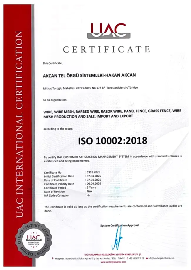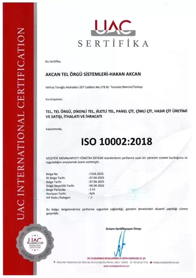 Tel Çit Sistemlerinde Kaliteli Hizmet