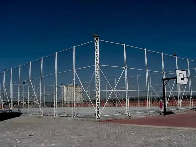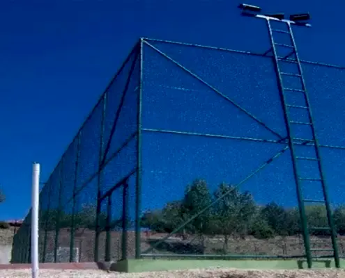 Spor sahaları genelde 30 m x 50 m ebadında olur. Yükseklik 6 -7 -8 metre olup her 15 metrede destek atılır. Dikey Borular 76 x 2.5 mm (3 kuşak atılır) antipas atıldıktan sonra boyama işlemi yapılır. Tel örgü bölümü Pvc kaplı tellerden 3 mm veya 3.5 mm kalınlığında, 50 x 50 göz aralığı örgü telleri kullanılarak tel örgü işlemi tamamlanır.